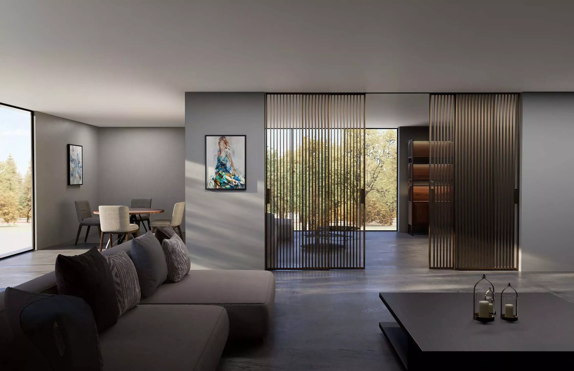 客厅、餐厅、与厨房形成更为流动的开放可能,通过极简的线条,围而不隔的功能,勾勒出更多灵动的模糊地带,创造更多承载风雅的生活可能。